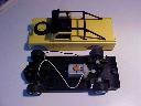 Finished slotcar, interior including the steering wheel which is on the wrong side (for a British slot car racing circuit). |