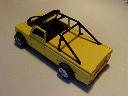 Finished slotcar, rear showing mounting points from original model kit. The tailgate has also been trimmed so that is lower than the pick up bed cover. |